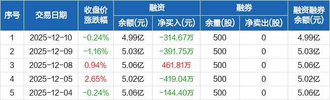 南方泵业:融资净偿还314.67万元,融资余额4.99亿元(12-10)