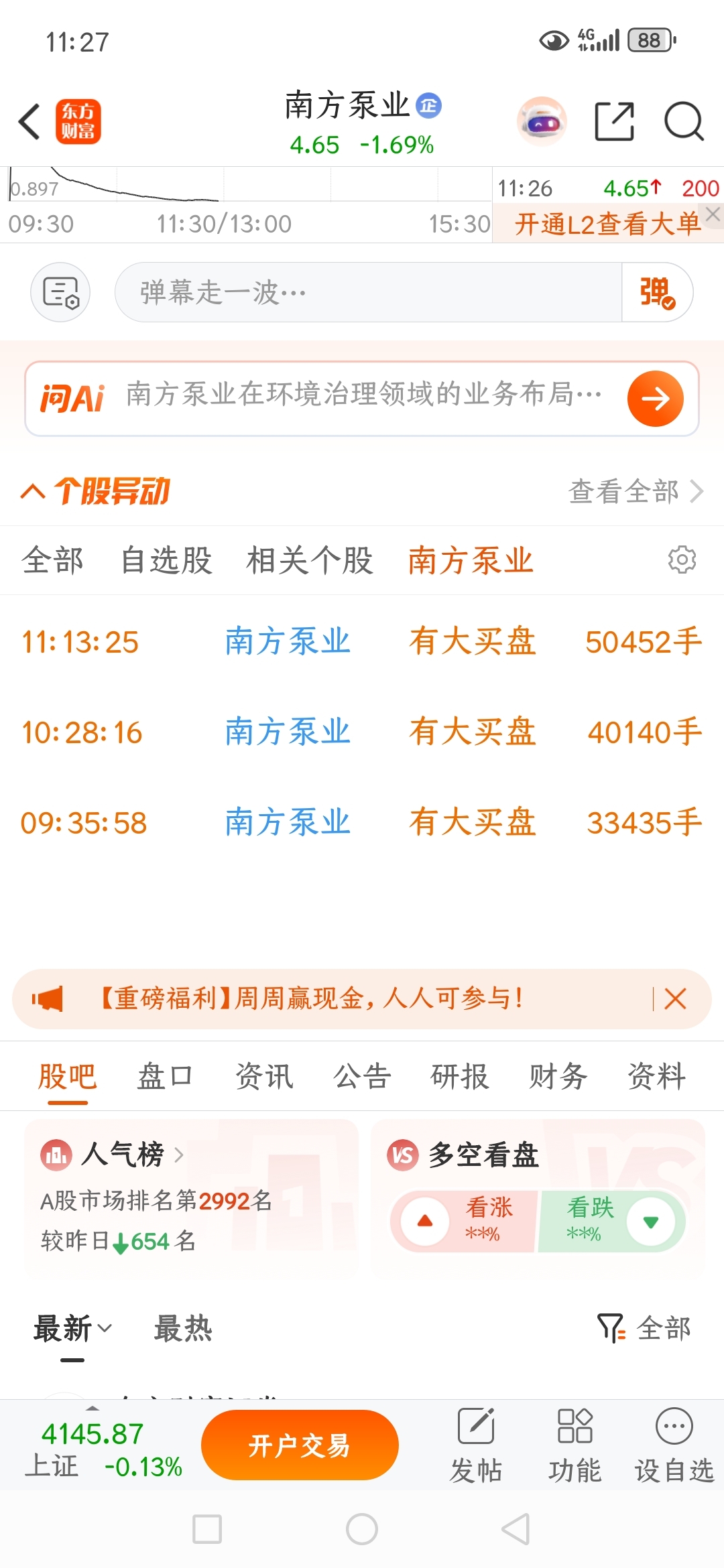 $南方泵业(SZ300145)$ 这13典型的量化高频股,一到4.8就大量卖,昨天卖了不少今天就下跌又买