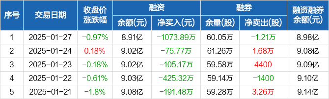 汤臣倍健:连续6日融资净偿还累计2026.78万元(01-27)