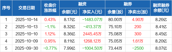 汤臣倍健:融资净偿还1483.07万元,融资余额8.17亿元(10-14)
