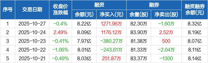 汤臣倍健:融资净买入1271.96万元,融资余额8.22亿元(10-27)