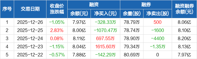 汤臣倍健:融资净偿还328.33万元,融资余额7.97亿元(12-26)