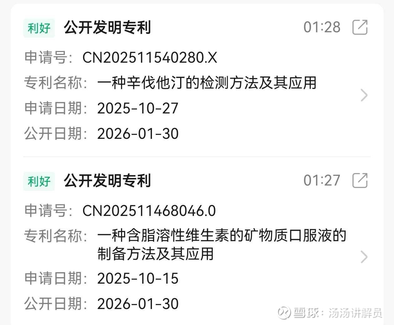 $汤臣倍健(SZ300146)$ 2026年1月30日公开两项发明