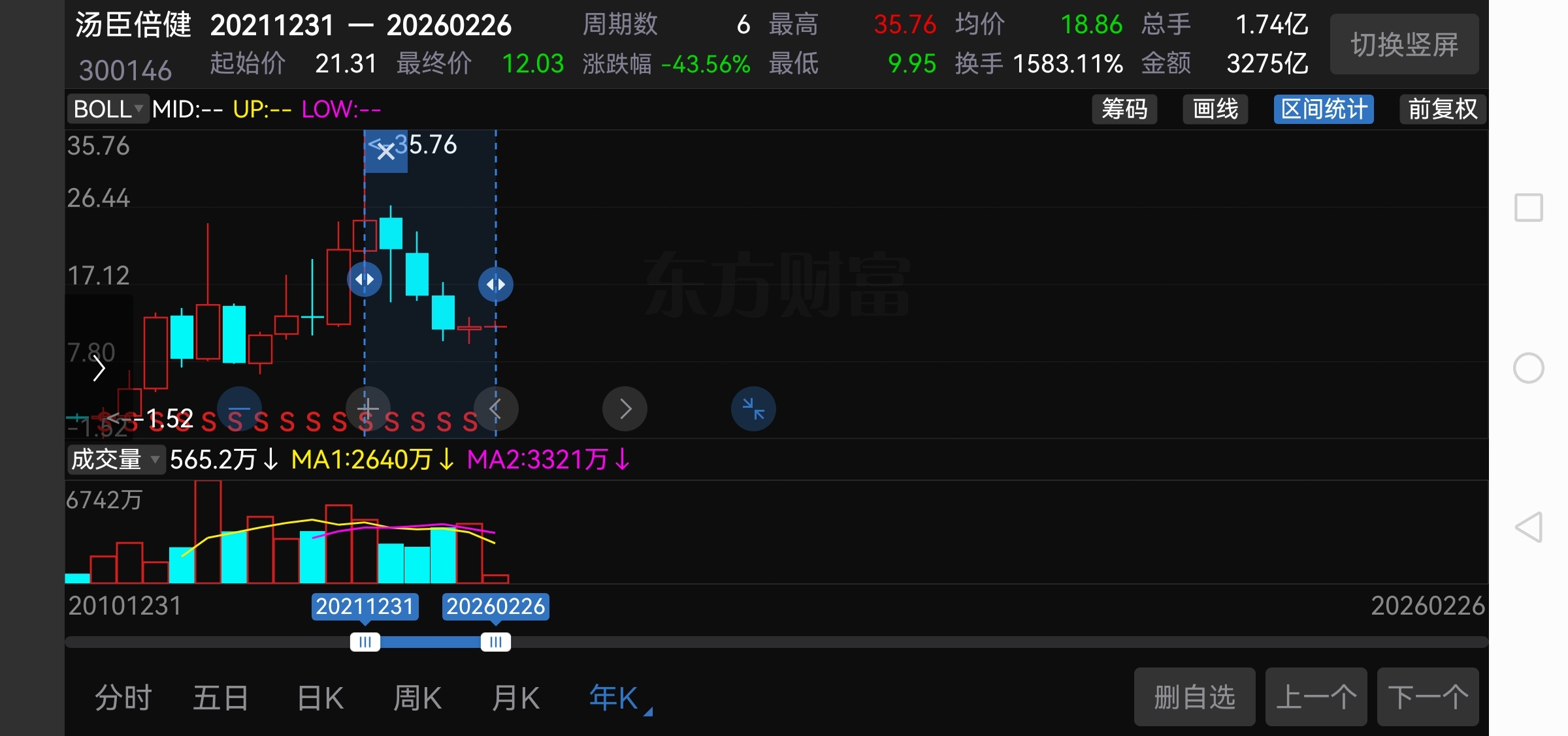 $汤臣倍健(SZ300146)$ 山泽损。为学日益,为道日损,损之又损以至于无为,无为而无不为……中下卦。越炒越亏,亏了又亏,亏完了就解脱了。