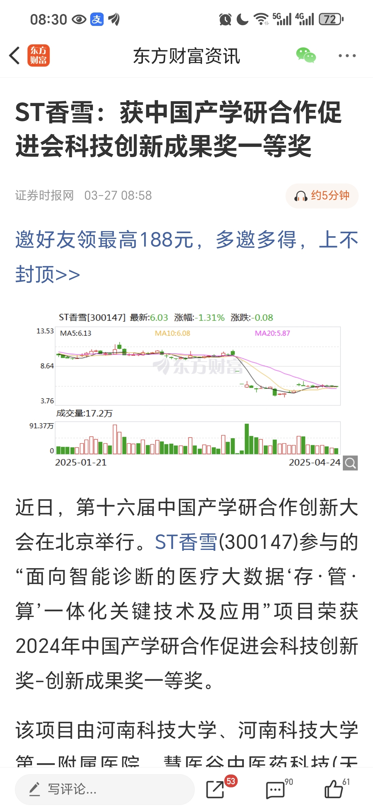 香雪奖都拿,叠加华为概念,香雪AI医疗真正的龙头
