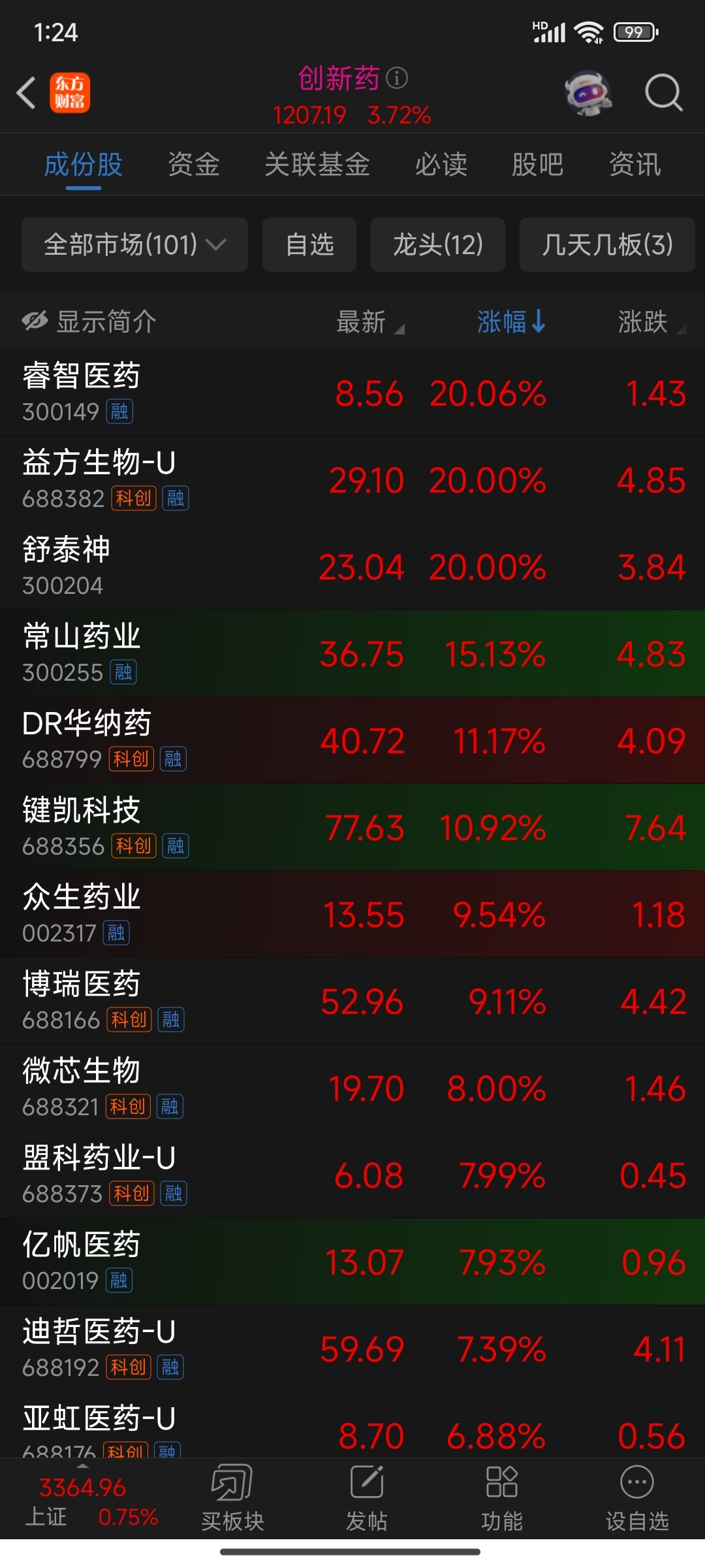 创新药板块4个点,香雪0.36,101家倒数第6!