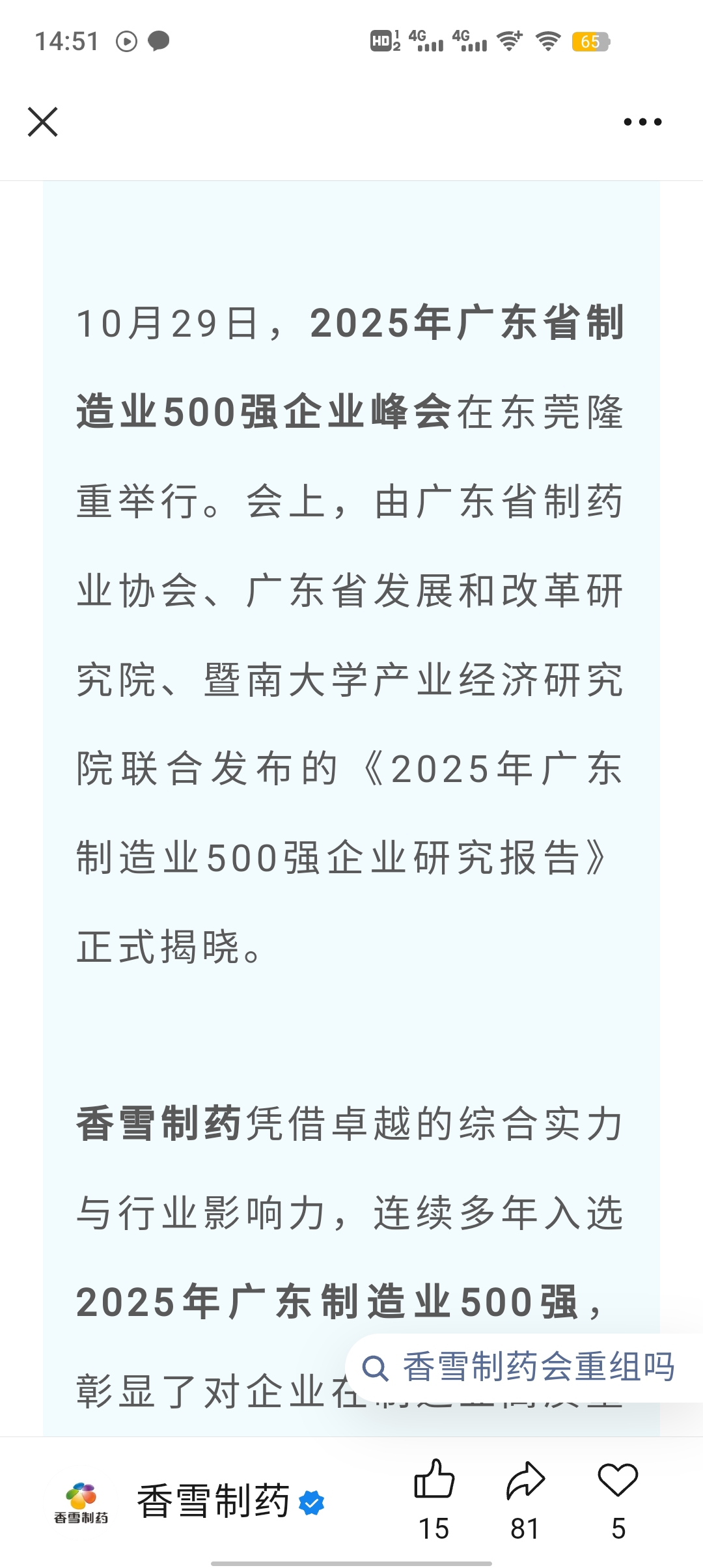 $ST香雪(SZ300147)$ 这股价对得起你入选500强企业吗