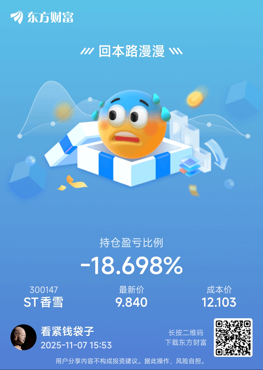 $ST香雪(SZ300147)$ 持有香雪第N天:今天把成本T少了1分钱,T出来的钱够周末加鸡腿了。小雪就是给你一颗糖,随手给你两巴掌的股。