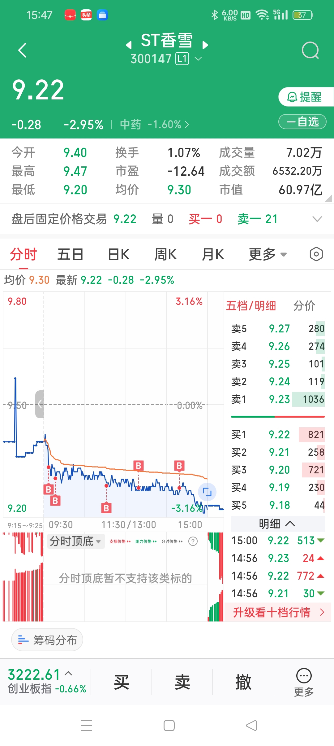 $ST香雪(SZ300147)$ 今天冲动了,加了5次被套了