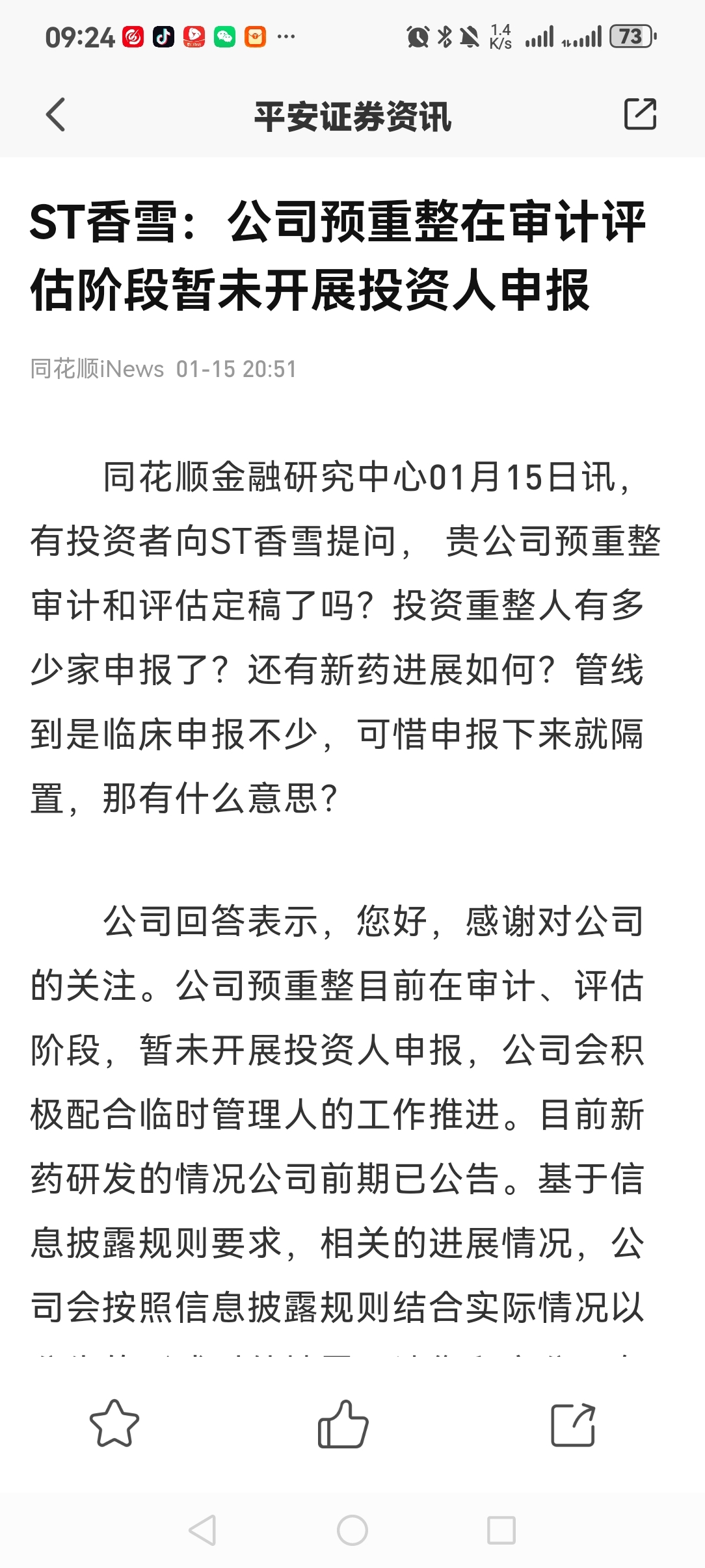 $ST香雪(SZ300147)$