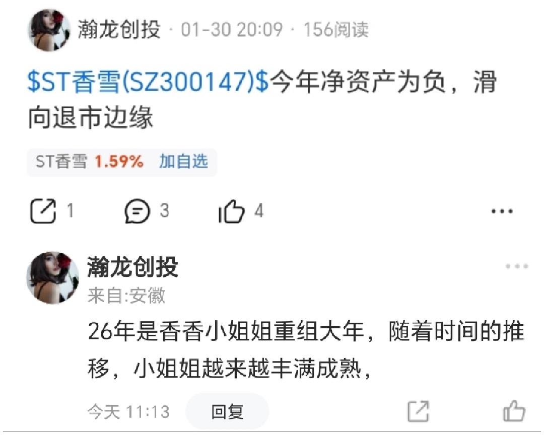 $ST香雪(SZ300147)$ 这就是你们的队友