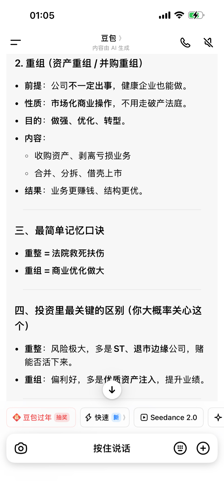 公告最核心的是这次是说重组而不是重整!难道不是利好?发挥想象空间吧谁会来与香雪合