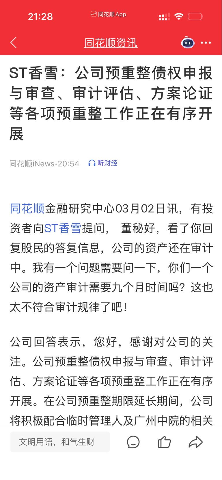 温馨提示: 1.根据《证券法》规定,禁止编造、传播虚假信息或者误导性信息,扰乱证券市场;2.用户在本社区发表的所有资料、言论等仅代表个人观点,与本网站立场无关,不对您构成任何投资建议。用户应基于自己的独立判断,自行决定证券投资并承担相应风险。《东方财富社区管理规定》