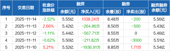 昌红科技:融资净买入1338.24万元,融资余额5.55亿元(11-14)