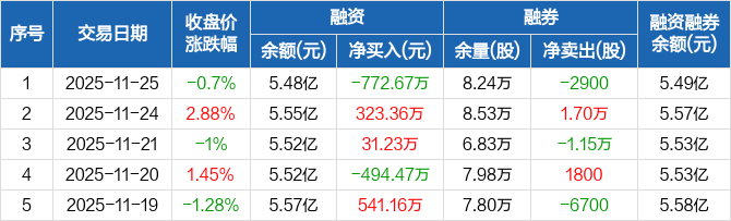 昌红科技:融资净偿还772.67万元,融资余额5.48亿元(11-25)