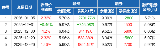 昌红科技:融资净偿还2701.77万元,创历史新高(01-05)