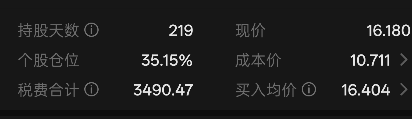 持股219天,调整3周差不多,周五开始略加仓至3.5成,下周继续加预计收周阳。
