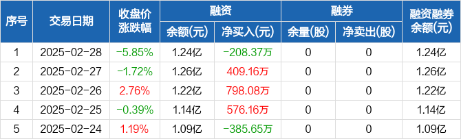 新动力:融资净偿还208.37万元,融资余额1.24亿元(02-28)