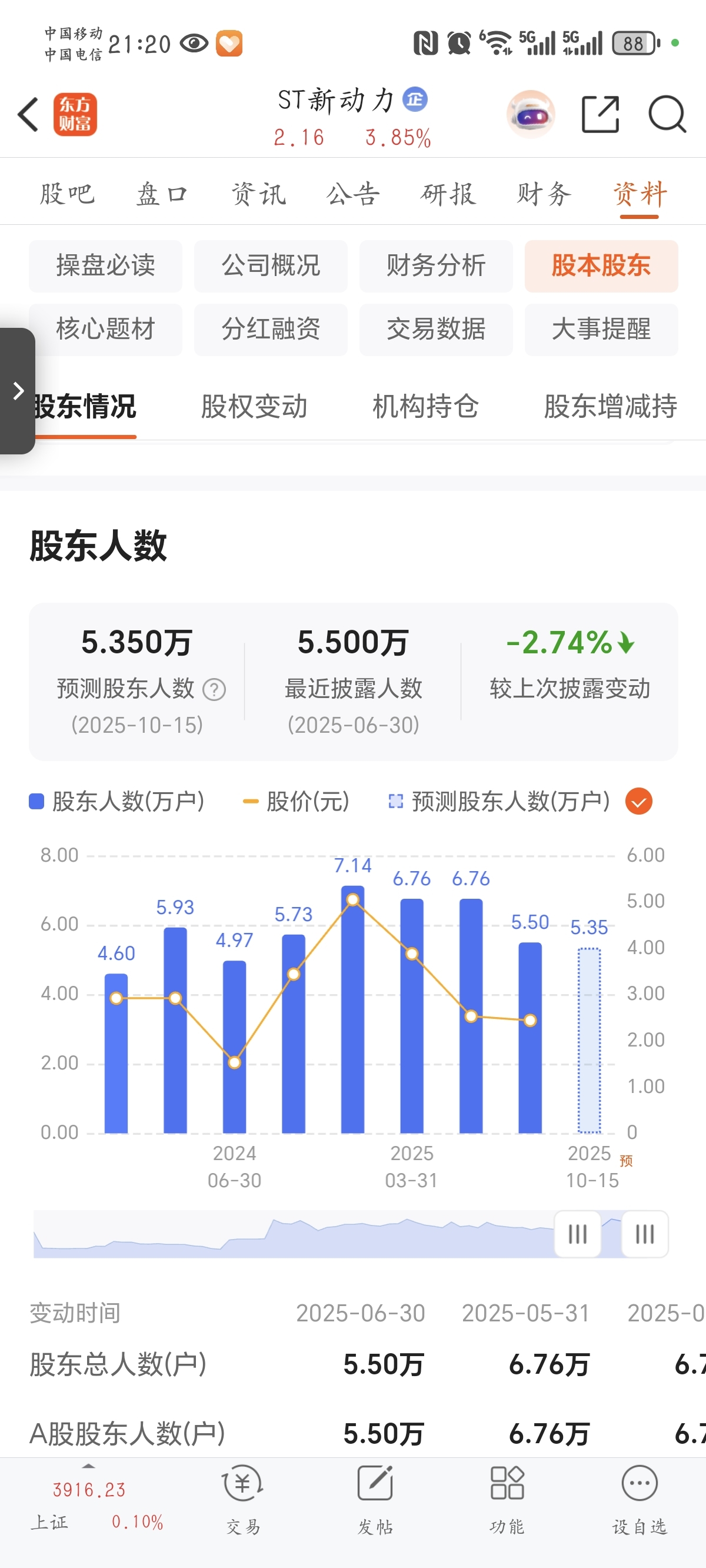 $ST新动力(SZ300152)$ 股东人数减少2.74%