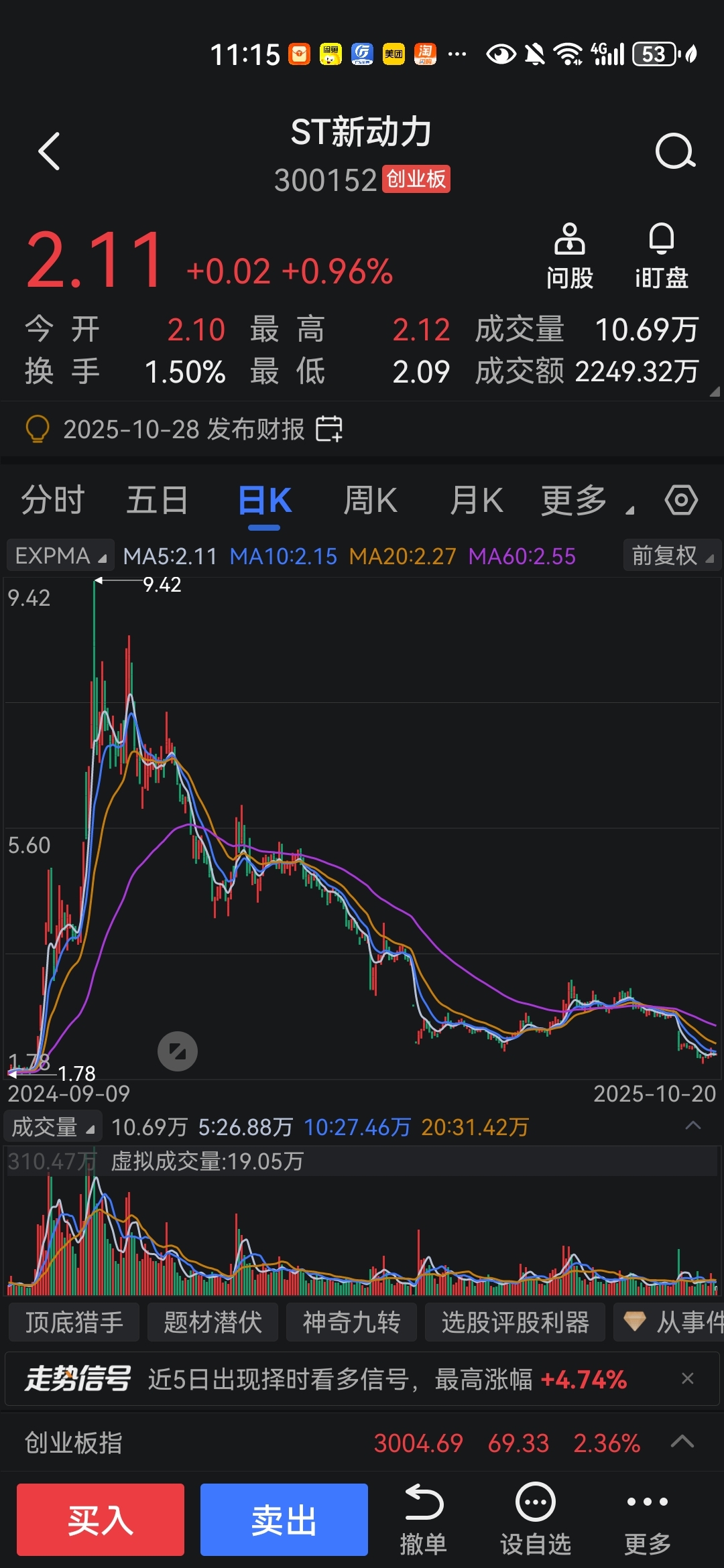 $ST新动力(SZ300152)$ 复盘发现之前的st汇金从9.9到1.97 对比新动力从9.42到1.96走势很像,是不是有大主力准备模仿去年的汇金,正好现在算一年多以后,就是雄安新区成立十周年的日子