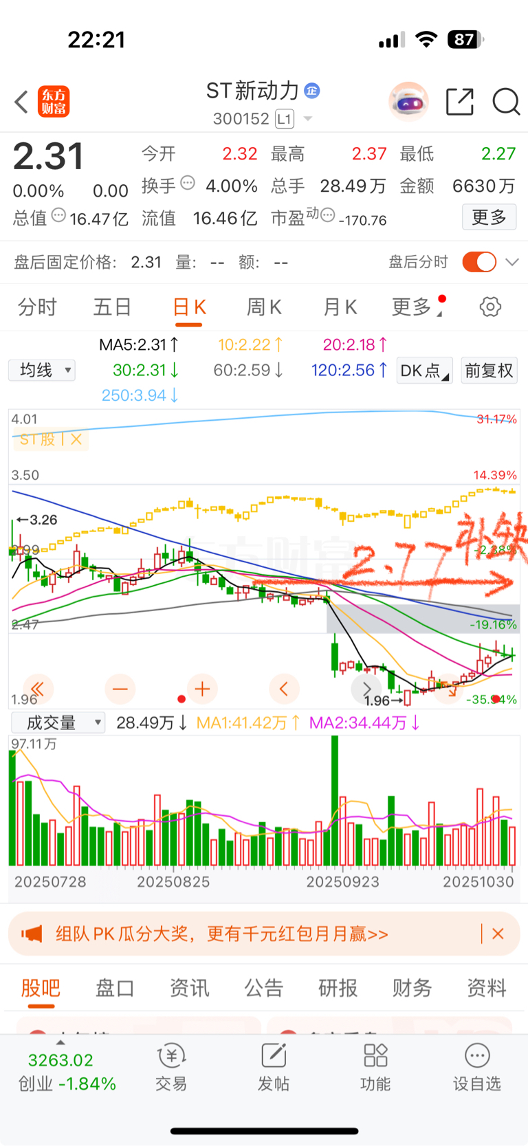 $ST新动力(SZ300152)$ 缺口已补,强势翻倍中