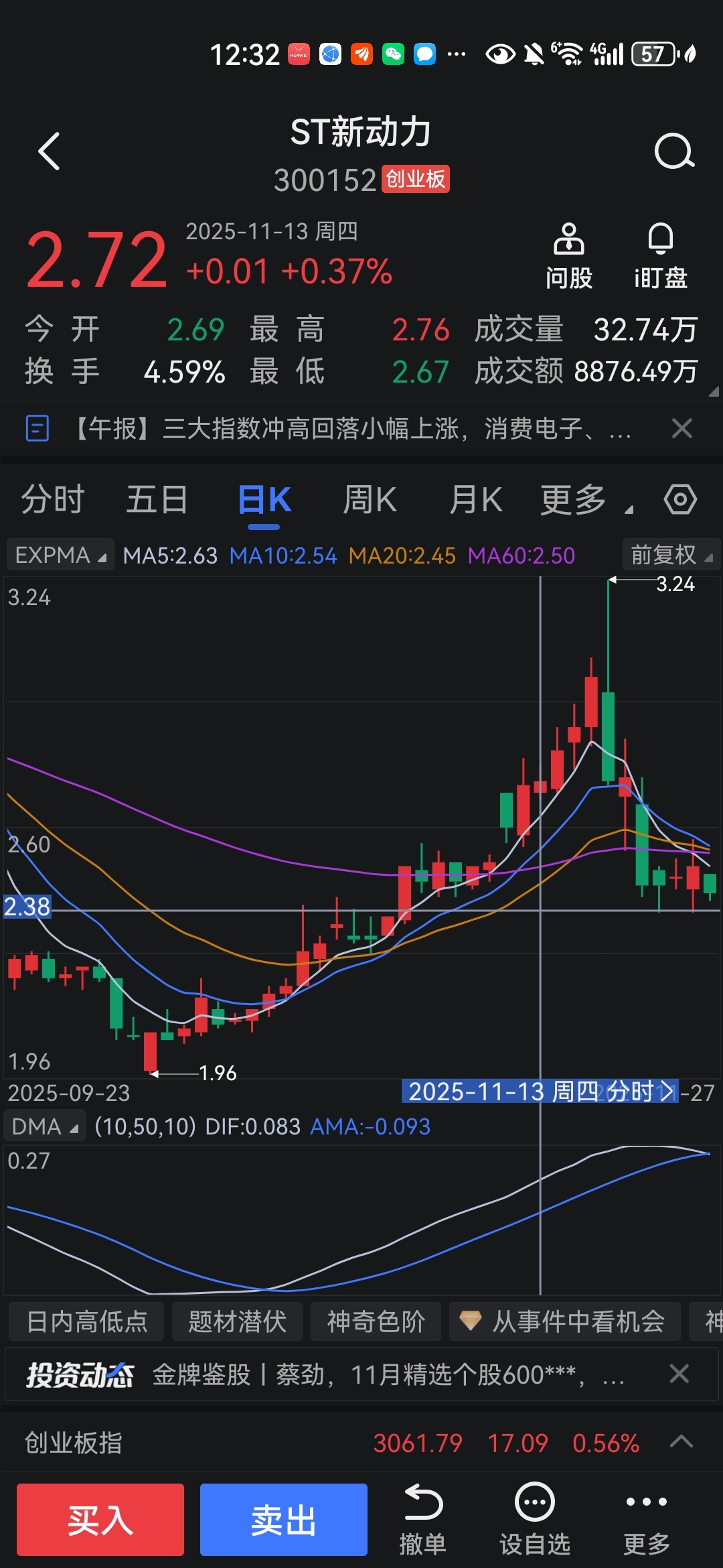 对比新动力和三羊马调整幅度新动力从3.24到2.38三羊马从35.36到24.9