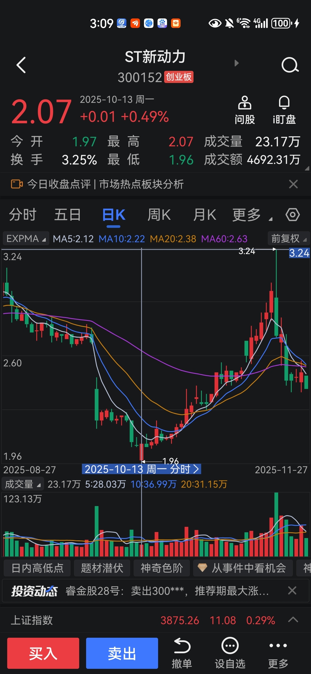 借用奥维的研究方法,复盘看了新动力10月13日以后的走势发现,新动力从来没有连续