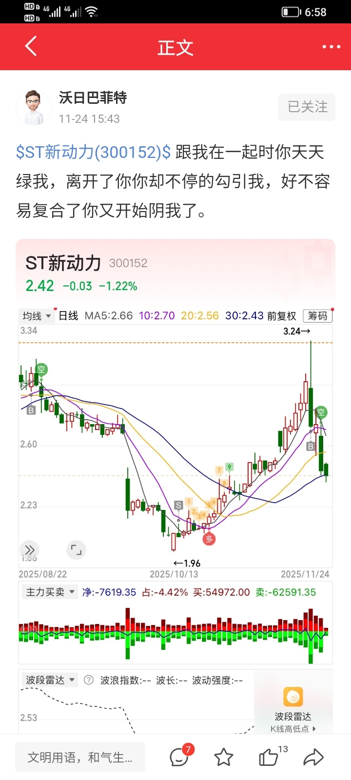 $ST新动力(SZ300152)$ 这是同花顺看到的一位老哥,,,心疼他3.2多满仓,好像十来万吧,这庄太狠了,