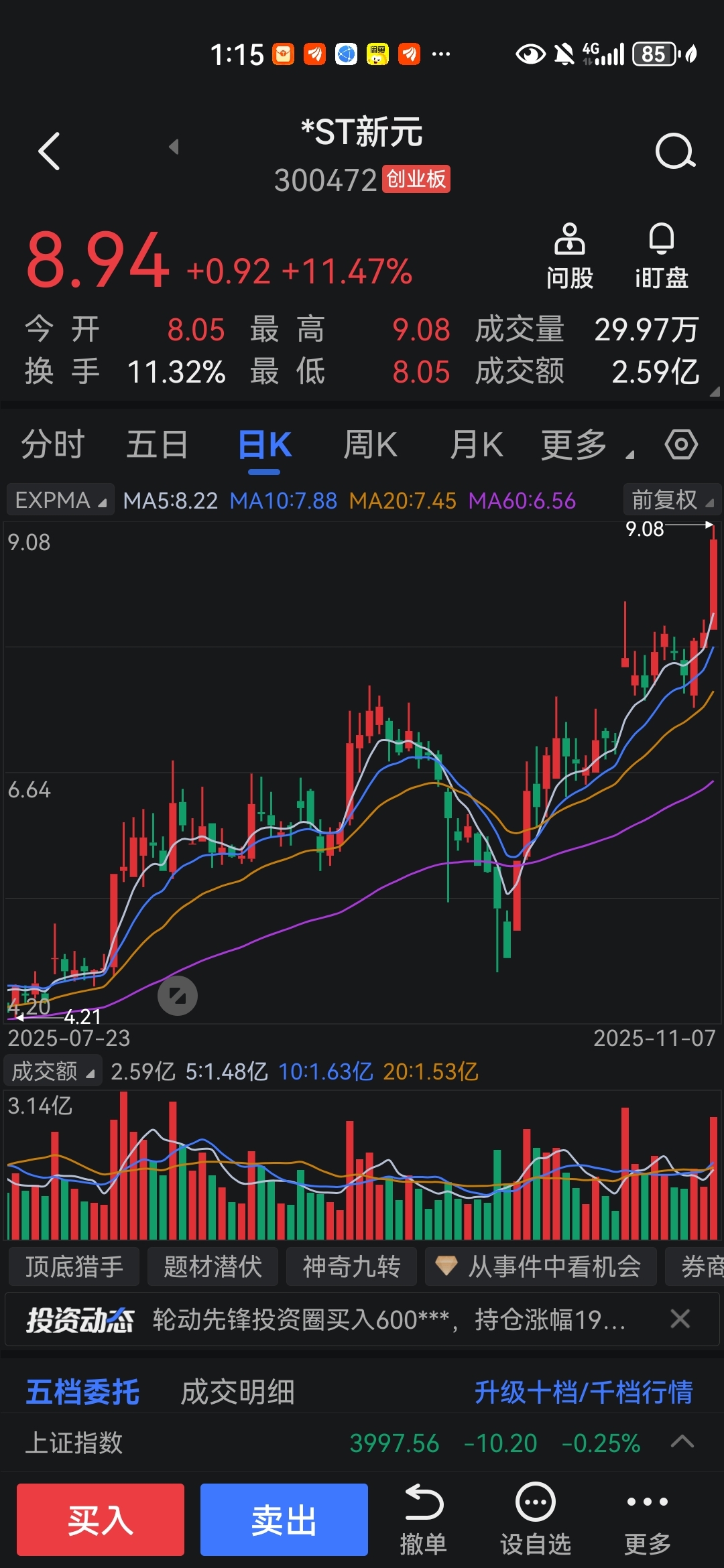 $ST新动力(SZ300152)$ 很多时候,能耐心持股,不受看空的干扰,才能挣到大钱,各个股吧都是看空的实在太多了,比如新元当时2.65介入的,中间大起大落到了11左右,当时吧里也是各种看空的太多了,最后没卖在最高点,新动力当时敢跟着1.97左右介入的,现在不都是盈利的吗,要有点耐心,只要介入的价格低,耐心持股就行