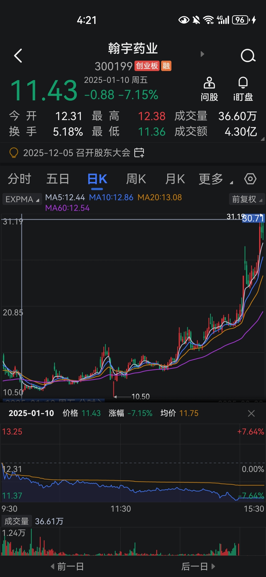 复盘看到了翰宇药业之前的走势,也是和新动力一样,有一段时间大幅度下跌,后来也起来