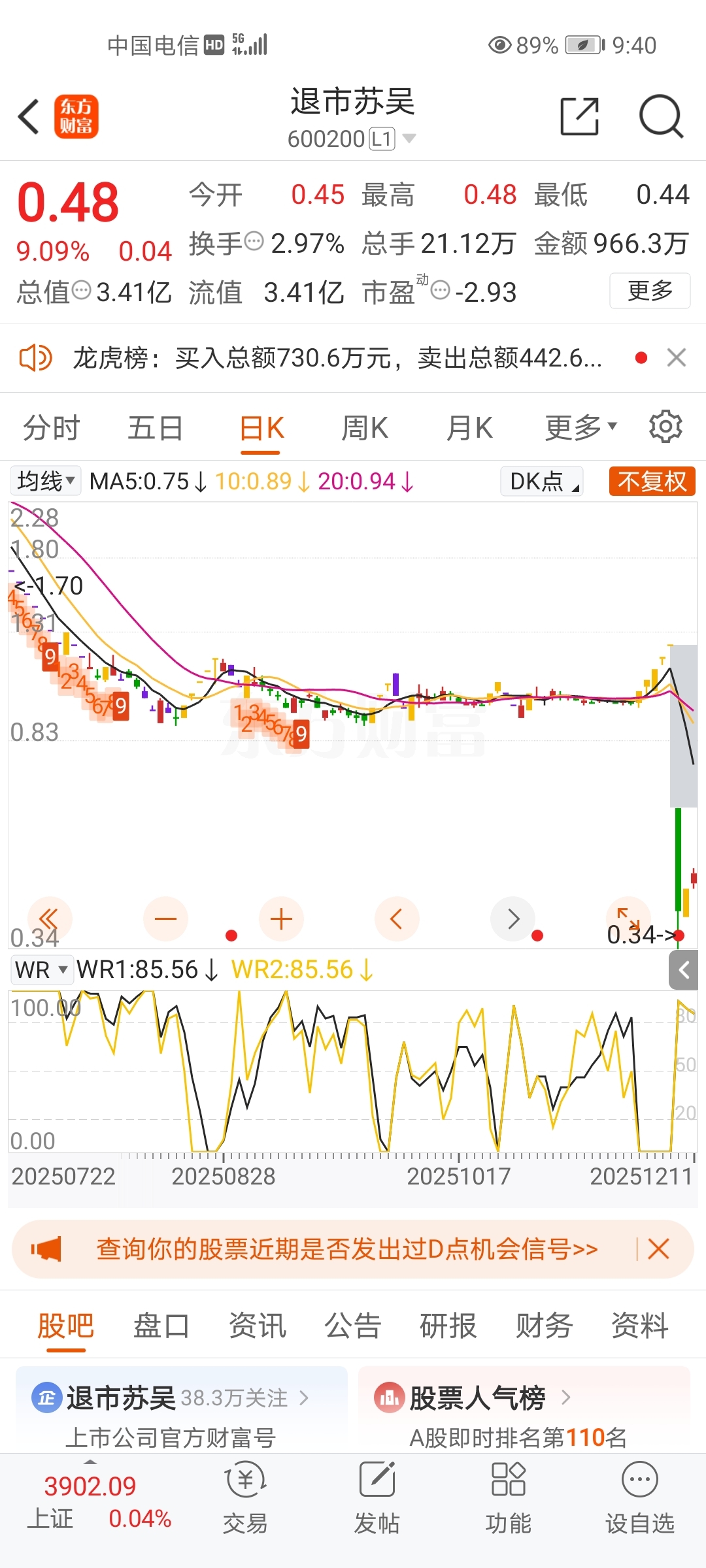 江苏吴中退市股都涨两个板了,新动力。你到底还在等待什么?