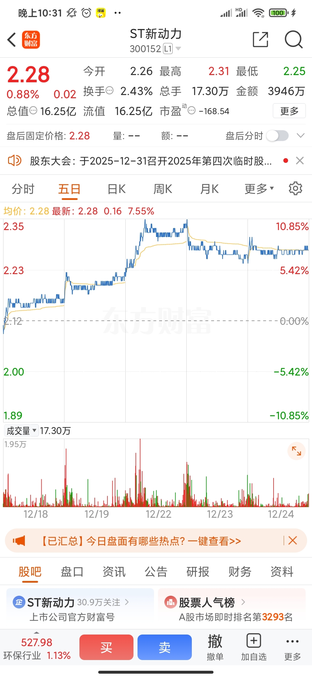 $ST新动力(SZ300152)$