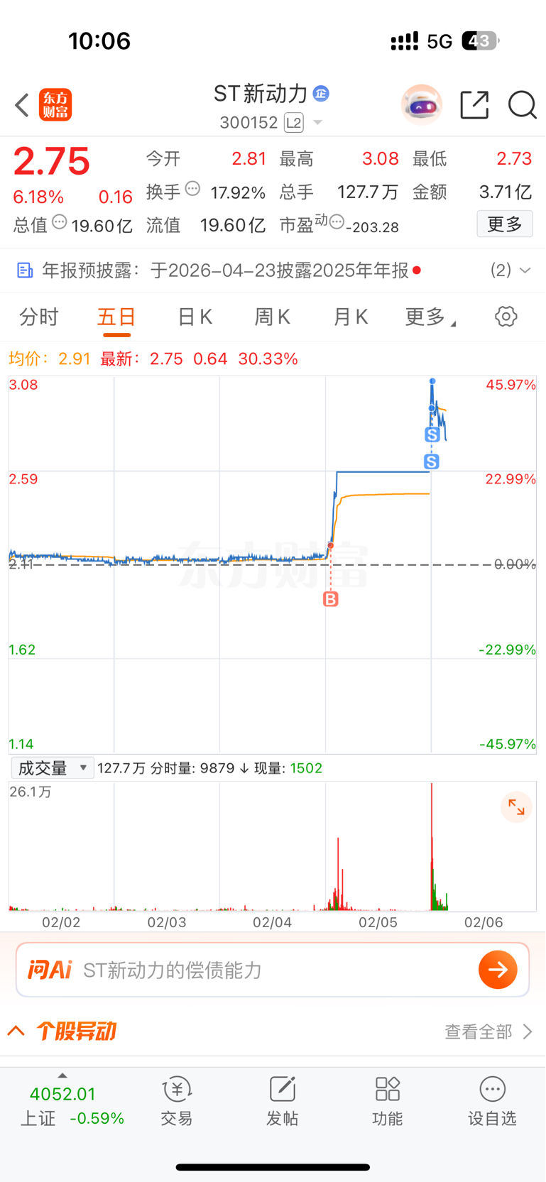 $ST新动力(SZ300152)$ 走啦各位发财