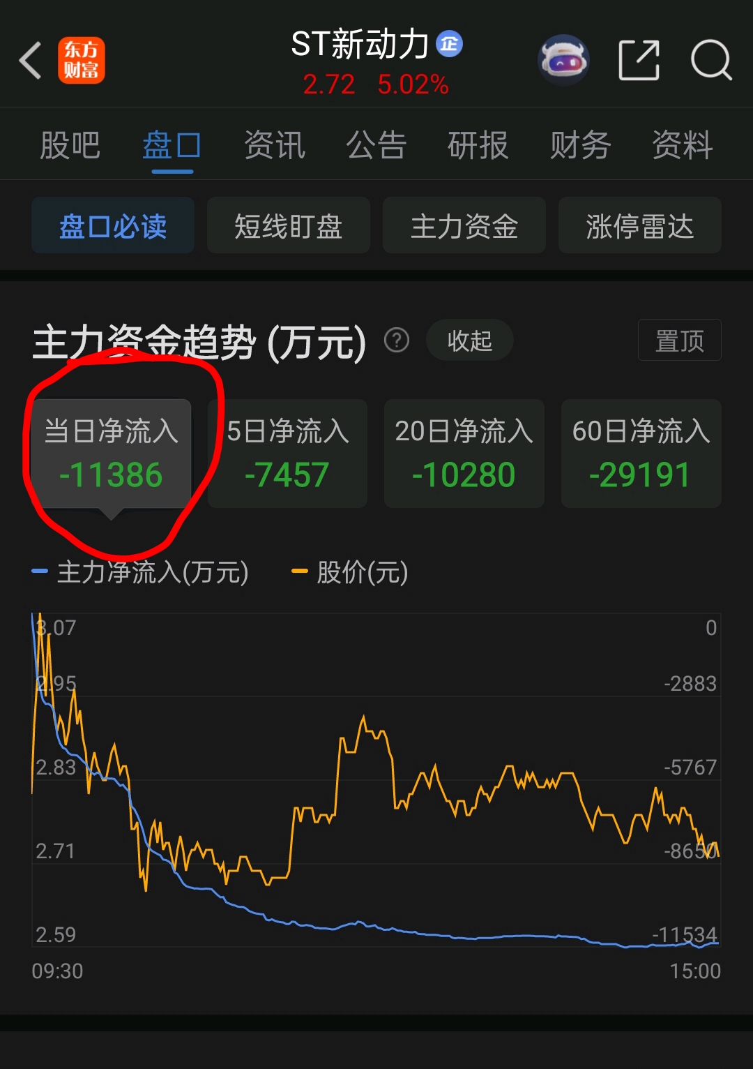 $ST新动力(SZ300152)$ 啊啊啊啊啊啊。什么显示资金流出1.2亿啊?