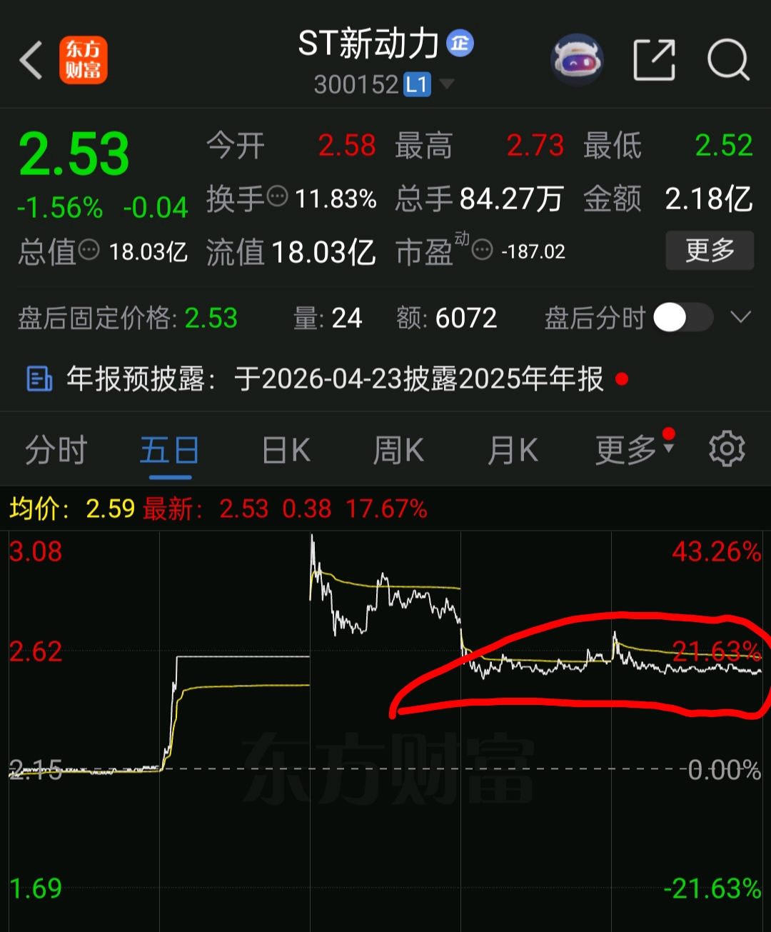 前天冲高回落,昨天跌下来后横盘两天了,前天最高到今天已经下跌22%,ST的20厘