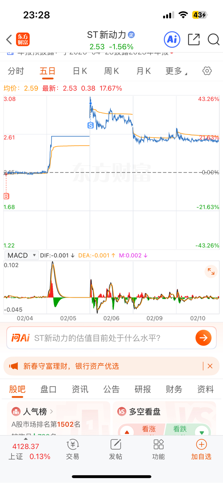 温馨提示: 1.根据《证券法》规定,禁止编造、传播虚假信息或者误导性信息,扰乱证券市场;2.用户在本社区发表的所有资料、言论等仅代表个人观点,与本网站立场无关,不对您构成任何投资建议。用户应基于自己的独立判断,自行决定证券投资并承担相应风险。《东方财富社区管理规定》