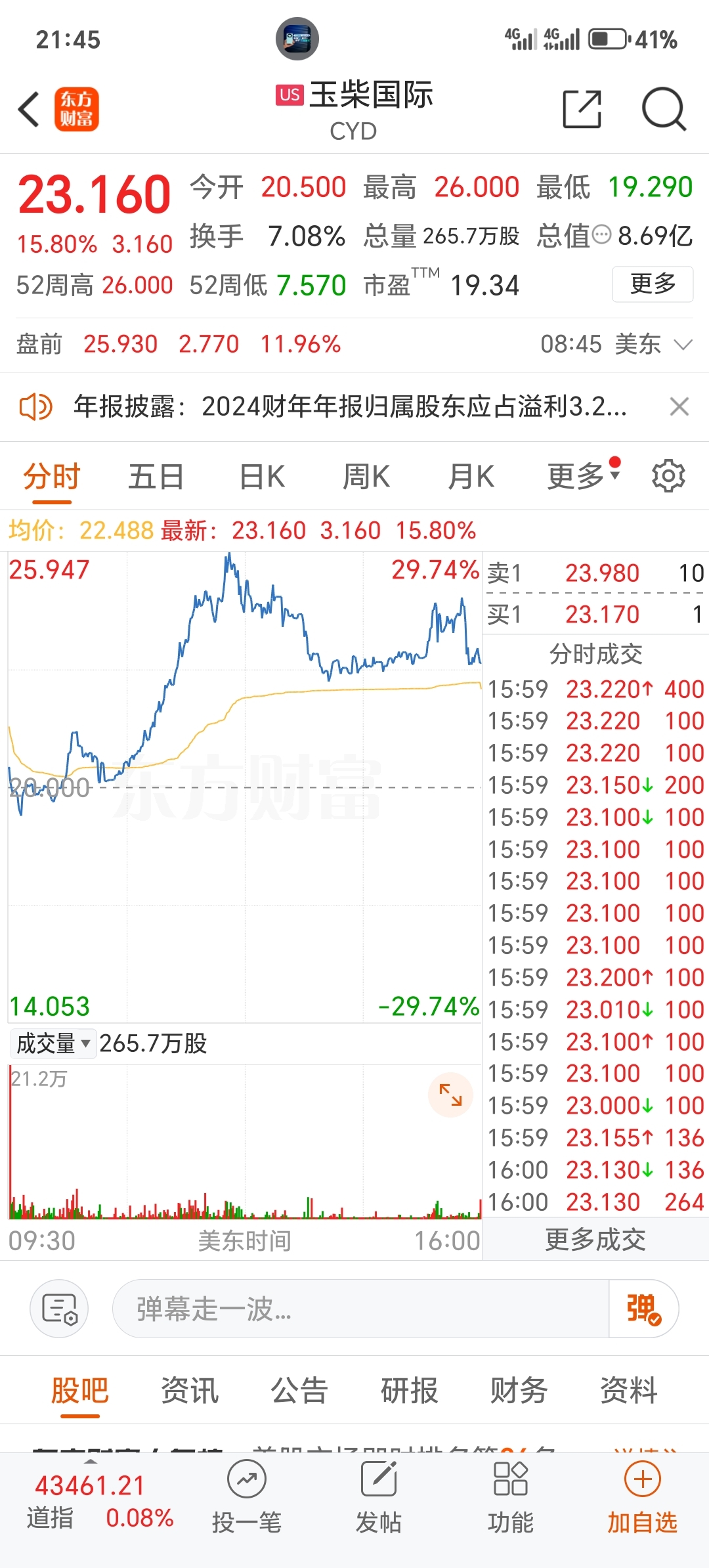 玉柴国际盘前12%,明天稳了