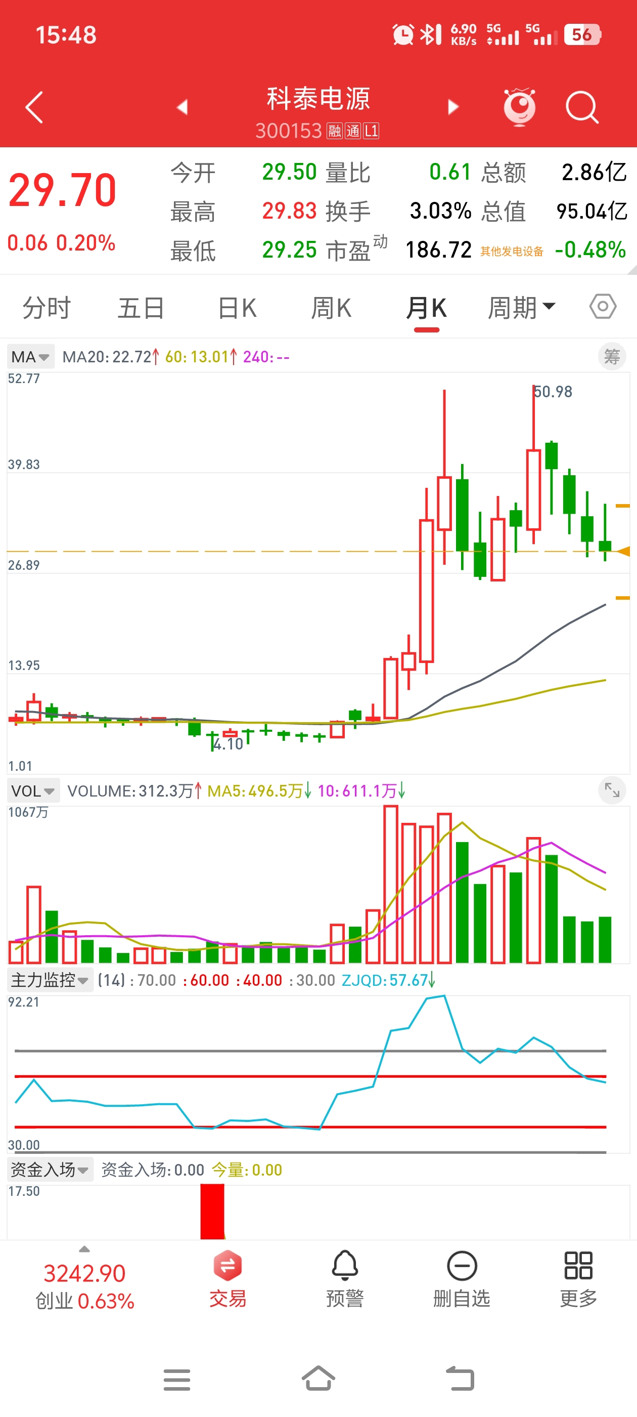 $科泰电源(SZ300153)$ 月线4连阴,明天最后一天,能不能红下