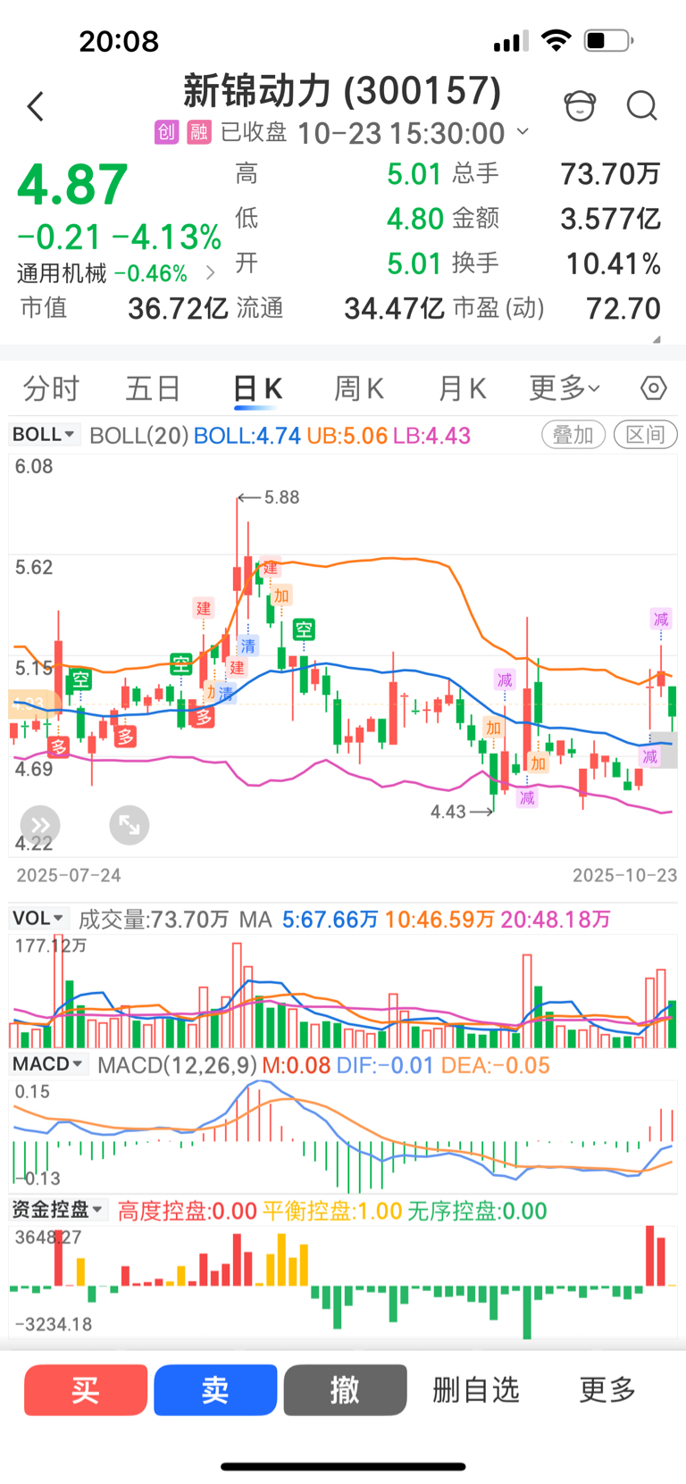 爆涨期货原油主连。明天不知道有没有肉吃,昨天5.17出货今天4.80接回来。