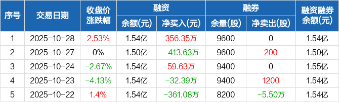 新锦动力:融资净买入356.35万元,融资余额1.54亿元(10-28)