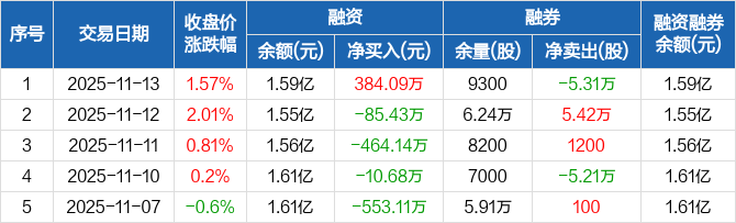 新锦动力:融资净买入384.09万元,融资余额1.59亿元(11-13)