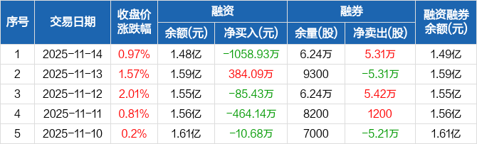 新锦动力:融资净偿还1058.93万元,融资余额1.48亿元(11-14)