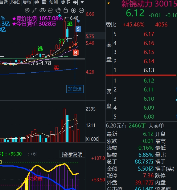 $新锦动力(SZ300157)$ 早上不能突破6.48,就说明是昨天进的资金自救,所以当成交额到3.5亿时就一键清仓了,跟随主力,至于后面还有没有另外的主力再来炒作就另说了。