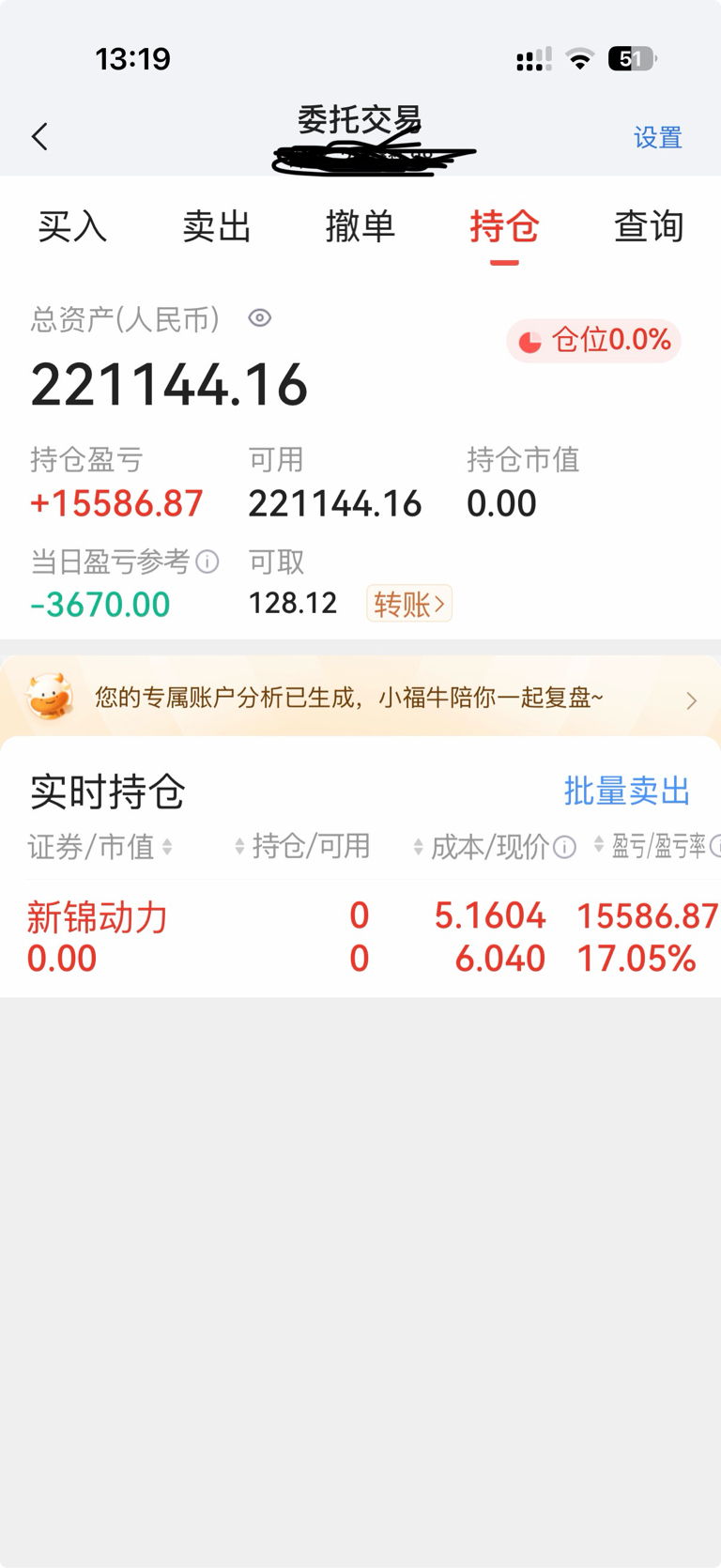 拿了十几年昨天清仓,今天就开始突破