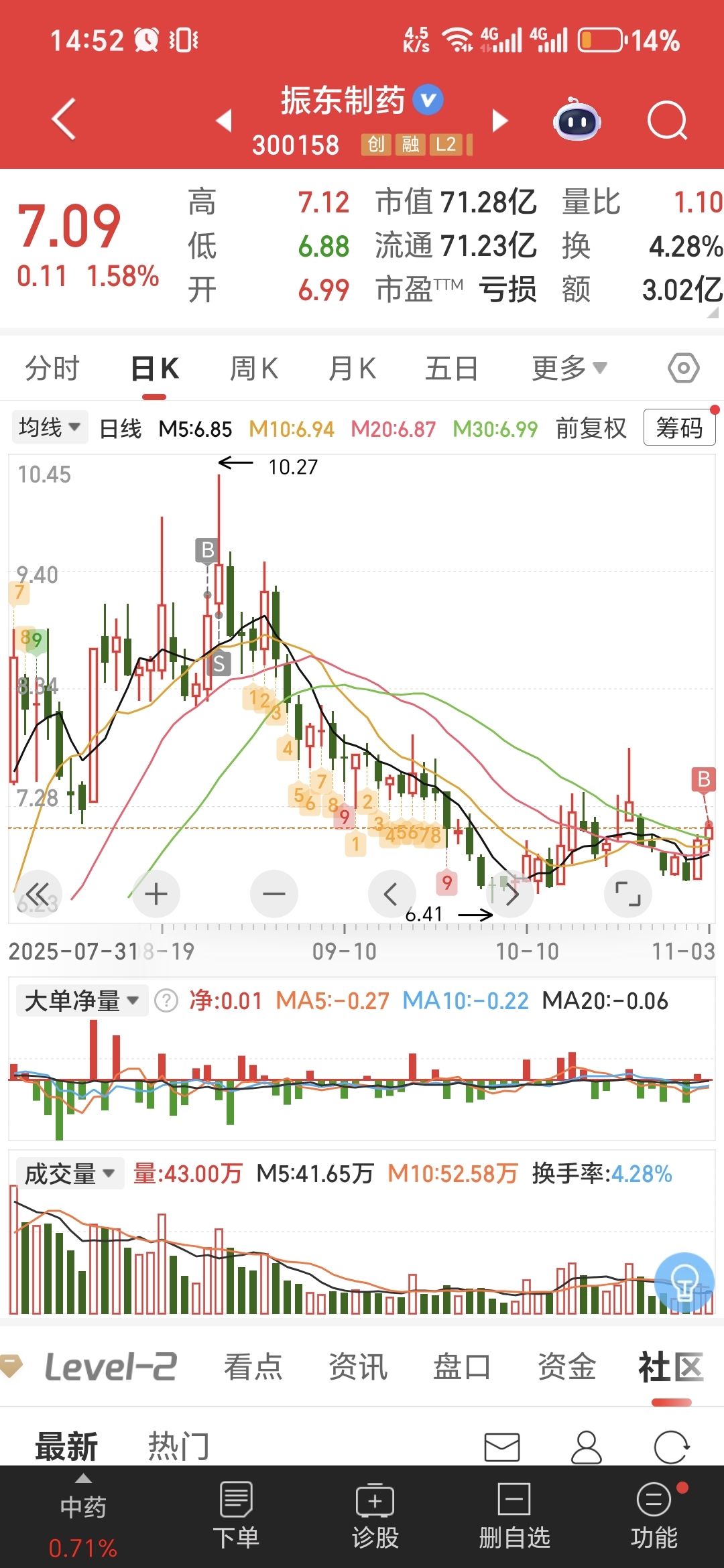 $振东制药(SZ300158)$ 上次买还是8月25号,第二天10.1卖掉了,今天再进一次,给我两个涨停咱就走