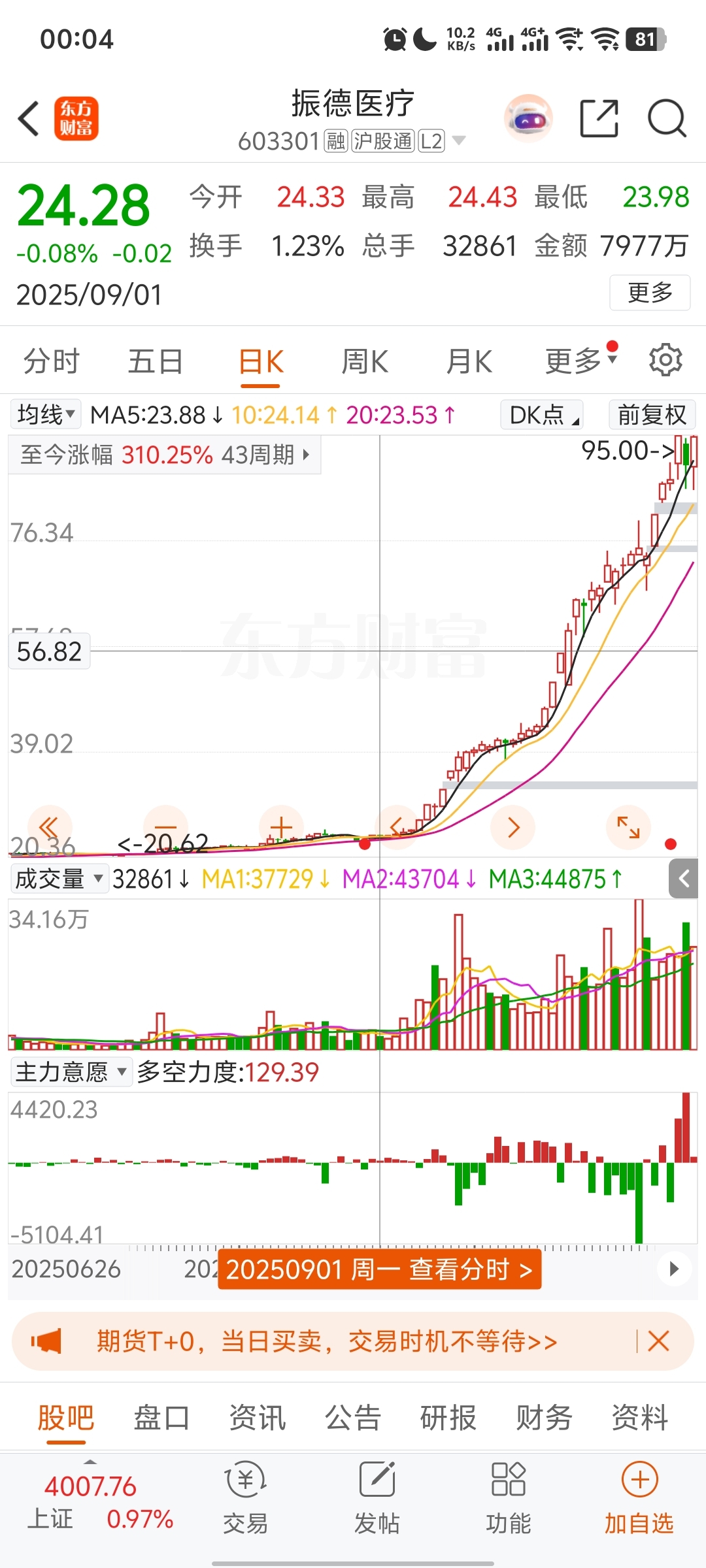 我才发现这个更牛逼啊,从我买振东这天算起,涨了4倍了!而我买的振东,却亏了30多