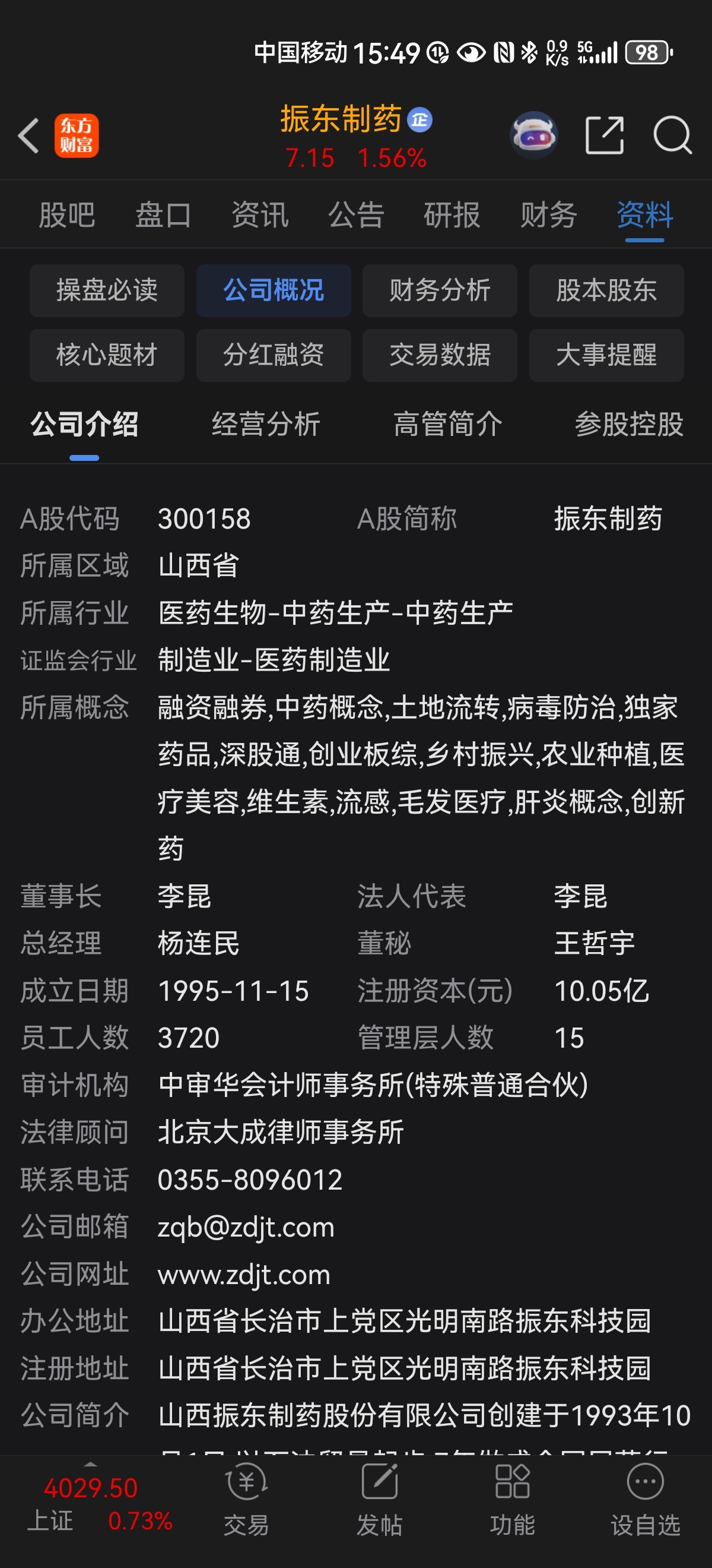 振东制药公司,成立三十年,上市十四年,市值才71亿元,你可以去想想,这是一个什么