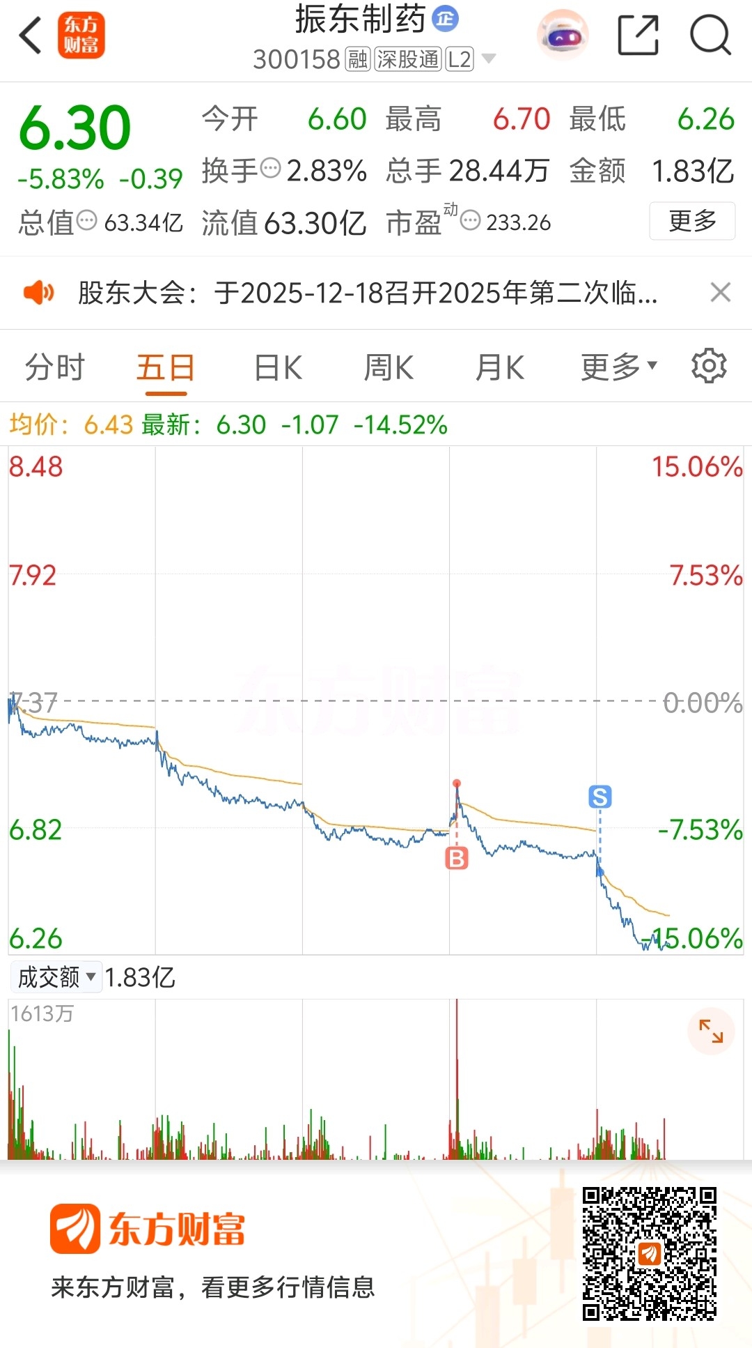 $振东制药(SZ300158)$ 亏4个点,果断出局
