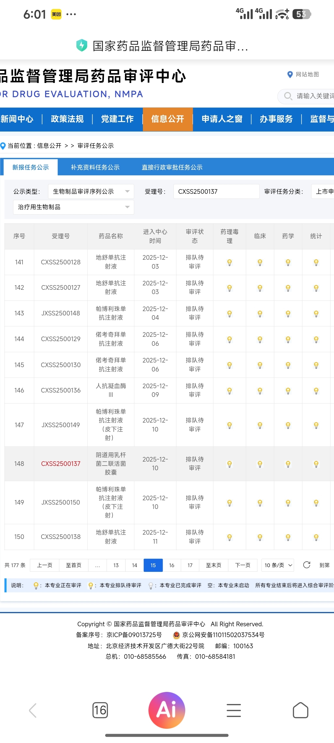 $振东制药(SZ300158)$ 振东制药参股的创新药上市受理号CXSS2500137目前排名148位,各位看看对比12.10受理日前进了多少名了?