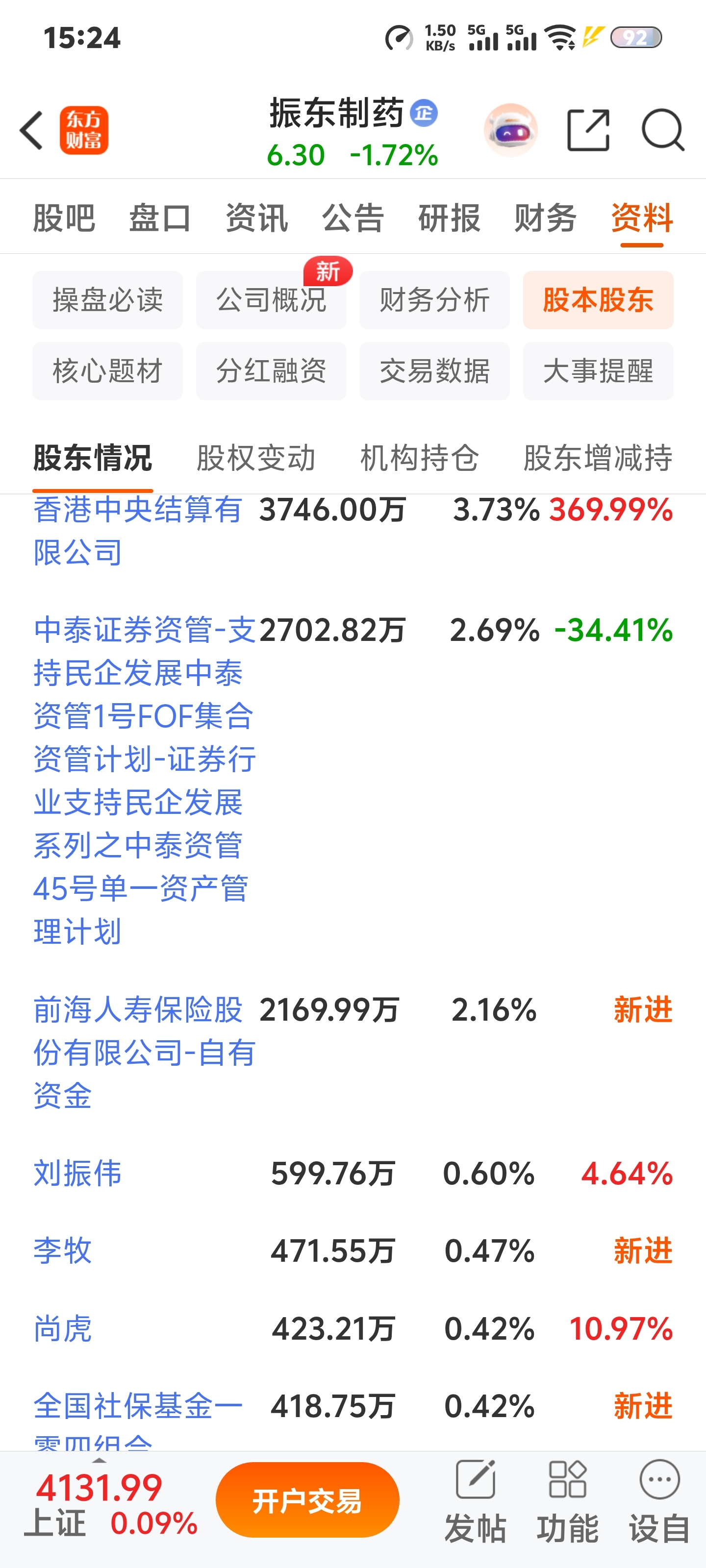 $振东制药(SZ300158)$ 这个票我也看不太懂,只知道前两天到了年线来了个猛的,然后查资料,发现社保新进,北向资金三季报也买了很多,然后这个票三季报到现在一直跌,社保买这种亏损股肯定应该调研过吧